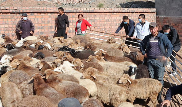 村民吐尔逊·哈孜赶着家里80只羊来洗药浴,在队员们的帮助下,半个多小时就全部洗完。“以前,村里没有洗羊池,我要赶羊两三个小时到别的村去,洗一只羊要1元钱。自从2019年村里来了工作队,每年我们在家门口就能免费洗羊,他们给我们做了实实在在的好事,感谢工作队。”他说。